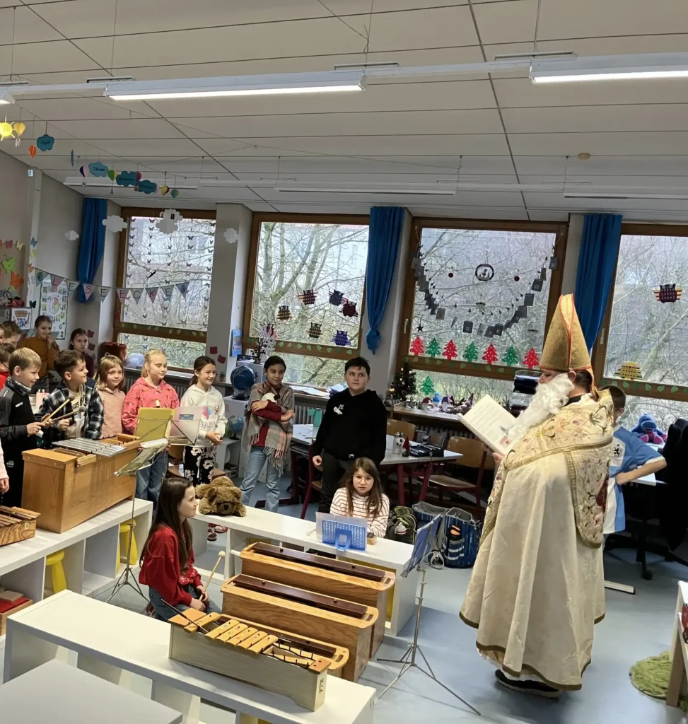 Am 6. Dezember war es wieder so weit: Der Nikolaus besuchte unsere Schule und zauberte sowohl großen als auch kleinen Herzen ein Lächeln ins Gesicht! Auch in diesem Jahr durften wir uns über einen besonderen Moment freuen, der durch die warme Atmosphäre des Miteinanders geprägt war. Der Nikolaus wurde von jeder Klasse mit einer kleinen Vorführung empfangen. Anschließend bekam jedes Kind ein kleines Säckchen mit Leckereien.