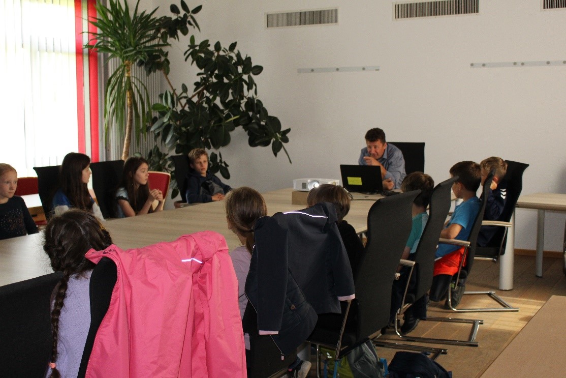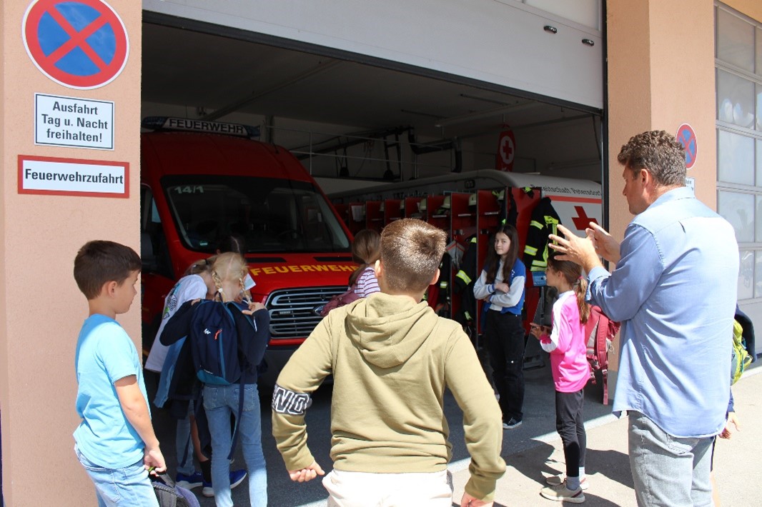Am Mittwoch, den 12.6.24 fuhren wir mit dem Bus zur Gemeinde Petersdorf, an der uns schon der Bürgermeister Herr Binder erwartete. Er zeigte uns den Sitzungssaal, in dem alle Kinder Platz nehmen durften. Wir unterhielten uns über die Aufgaben der Gemeinde, vor allem über das örtliche Wasserversorgungsnetz. Des Weiteren durften wir Herrn Binder Fragen stellen, wodurch wir viele interessante Details erfuhren. Nachdem wir auch die örtliche Feuerwehrhalle besichtigt hatten, fuhren wir mit jeder Menge gewinnbringenden Eindrücken wieder an unsere Schule zurück.