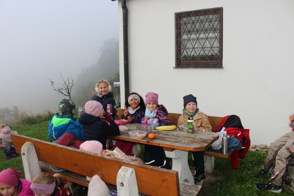 Unterwegs gab es viel zu entdecken: bunte Blätter, Pilze und spannende Pfade machten die Wanderung zu einem echten Abenteuer. Oben angekommen, wurde eine ausgiebige Rast eingelegt. Bei mitgebrachten Brotzeiten und Gesprächen konnten sich alle erholen und die tolle Aussicht genießen.