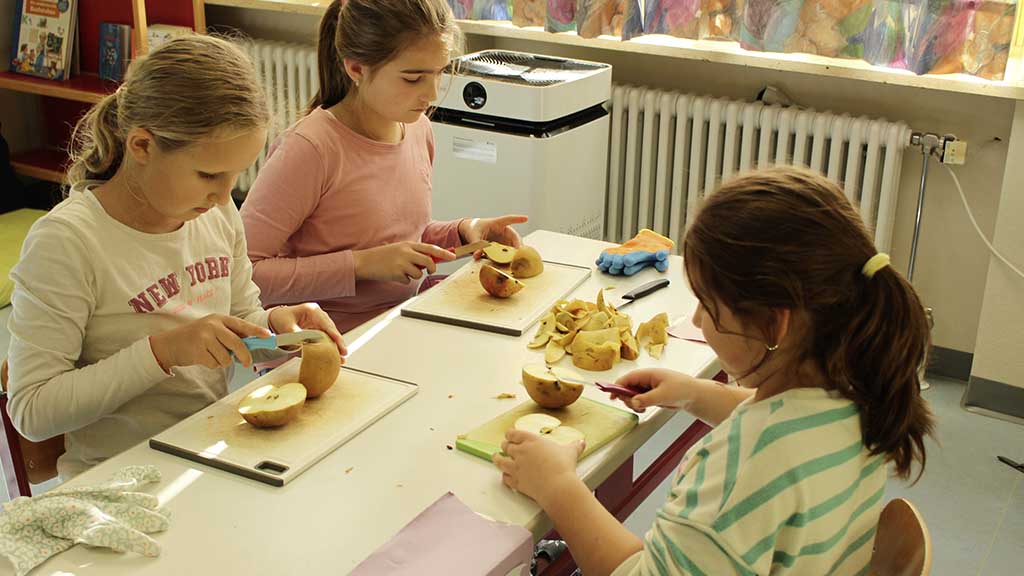 Die Kinder der Garten-AG bereiteten aus den Äpfeln des Schulgartens ein leckeres Apfelkompott mit weihnachtlichen Gewürzen zu.