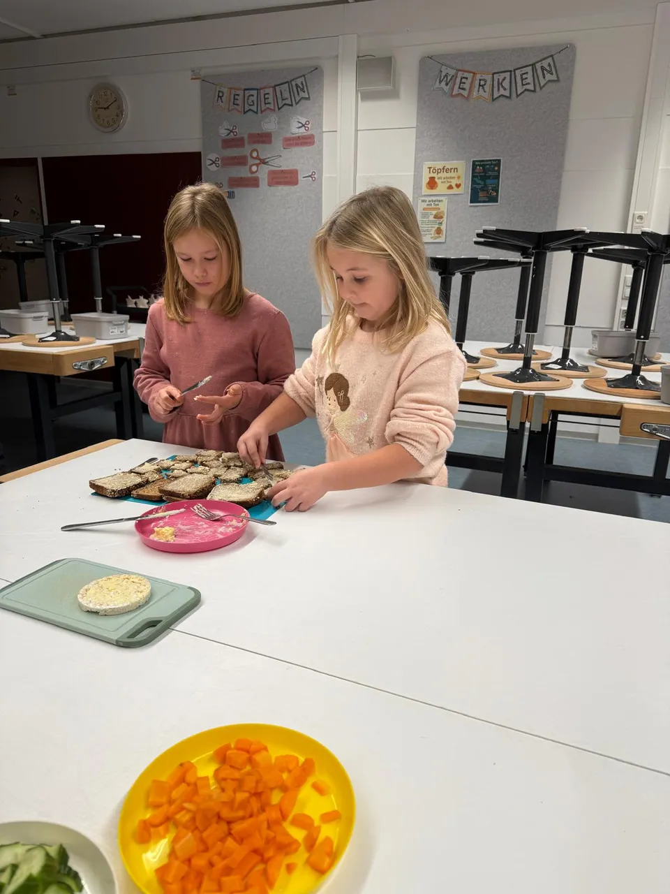 Ein wichtiger Baustein des Projekts ist die Geschmacksschulung, die in der 2. Klasse stattfindet. Dabei durften unsere Schülerinnen und Schüler selbst aktiv werden: Mit viel Freude und Neugier bereiteten sie Butterbrote, Trinkjoghurt und Fruchtjoghurt aus ausgewählten Zutaten zu. Natürlich durfte anschließend auch alles probiert werden – und so wurde schnell klar: Selbstgemachtes schmeckt gleich doppelt so gut!