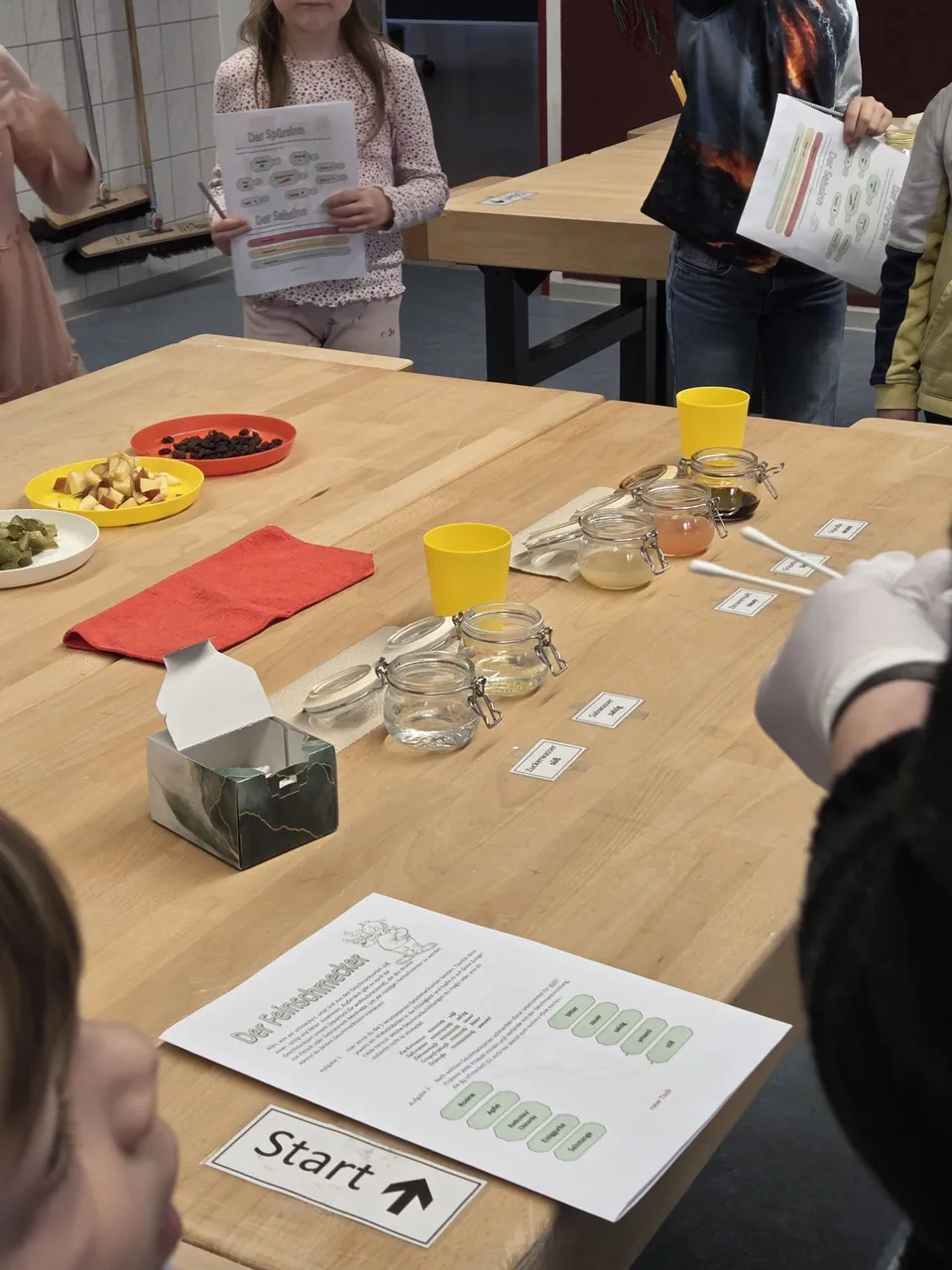 Im zweiten Teil der Geschmacksschulung ging es auf eine spannende Entdeckungsreise der Sinne. An verschiedenen Stationen probierten die Kinder unterschiedliche Lebensmittel und erkundeten ihre Geschmacksrichtungen. Mit offenen Augen, Nasen und Geschmacksnerven wagten sich die Kinder an viele neue Eindrücke.