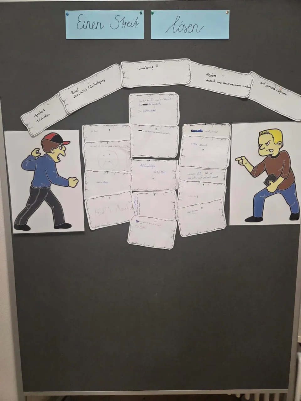 Doch im Alltag gelingt ein respektvoller Umgang nicht immer. Viele Kinder berichteten von Streit, Schimpfwörtern und verletzenden Situationen. Mithilfe der Geschichte „Die Brücke“ von Natalie Oettli haben wir darüber gesprochen, wie sich Gemeinheiten anfühlen. Oft entstehen unüberwindbare Mauern zwischen Menschen, die es schwierig machen, wieder einen Zugang zueinander zu finden. In Rollenspielen konnten die Kinder anschließend selbst erproben, was man alles tun kann, um Streitigkeiten wieder zu lösen. Gemeinsam entwickelten die Kinder Ideen, wie man „Brücken“ zueinander baut und wieder freundlich miteinander umgeht.