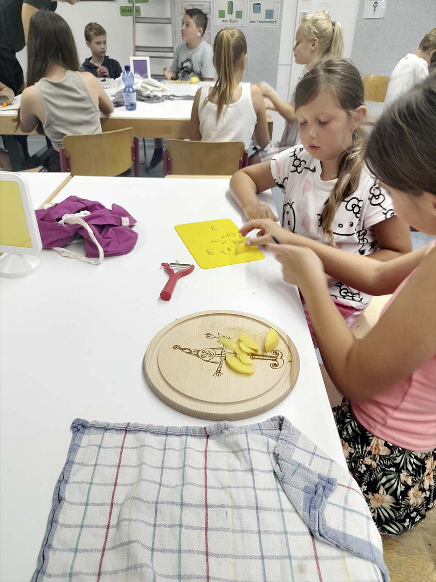 Die Schulgarten-AG und die Kinder der 2. Klassen haben sich im Rahmen des HSU-Unterrichts zum Thema „Obst und Gemüse“ um die Bepflanzung unserer Hochbeete gekümmert. Bereits im Frühjahr stellten die Kinder Saatbänder her, legten diese in die Erde und pflanzten auch noch weiteres Gemüse ein. Nach wochenlanger Pflege unserer Pflanzen konnten wir voller Stolz das Gemüse nach und nach ernten und eine leckere Gemüsesuppe für alle kochen!